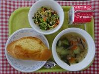 今日のマカロニスープは、いつものマカロニではなく、小さなアルファベットの形をしたマカロニを使いました。とても小さいので、たくさのアルファベットマカロニが入りました。初めて食べた子どもも多く、みんなとても喜んでいました。