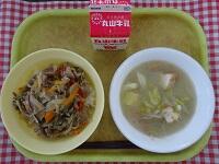 今日は、4年生のリクエスト献立でした。ダントツで「鶏天ご飯」が1位でした!根強い人気の「鶏天ご飯」。多めに作りましたが、きれいに食べてくれました。「鶏天ご飯」と同じくらい、「りっちゃんサラダ」も人気です。「サラダでげんき」の内容と同じように、色々な食材を入れて作りました。味の決め手は、かつおぶしと昆布です。普段野菜をあまり食べない子も、食べていました。