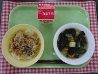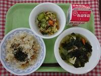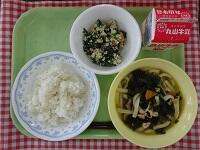 減量麦ご飯 わかめうどん 白和え 牛乳