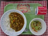 チキンカレーライス ツナサラダ お祝いクレープ 牛乳