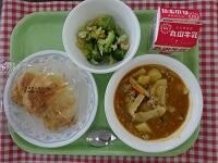 今日は、学園生の新入園・新入学・進級をお祝いして、お祝いクレープのついたお祝い献立でした。カレーライスはやっぱりみんな大好きなようで、ペロリとたべていました。クレープは、小麦・牛乳・卵を使わずに作られたもので、イチゴ味のクリームと米粉で作った生地がよく合っていてとっても美味しかったです。