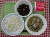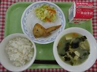 鶏天ご飯 わかめスープ りっちゃんサラダ 牛乳