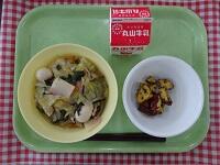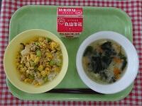 今日は、中華メニューの献立でした。酢豚は、ケチャップ・酢・砂糖・しょうゆで味つけした野菜のあんと一緒に和えました。コーンスープは、鶏ガラスープのだしとごま油の風味で中華風に仕上げました。みんなよく食べていました!