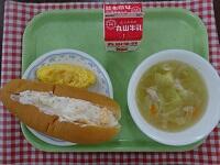 月曜日は通常「ご飯」の日ですが、GWの中日ということで「クロワッサン」にしました。「クロワッサン」という名前は、フランス語で「三日月」という意味なのだそうです。形が三日月のようなところから、この名前が付けられたんだそうです。バターの風味がよく、とても美味しかったです。