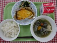 今日のメインは、『魚のもみじ焼き』でした。「ホキ」という白身魚の切り身に塩と酒で下味を付けて、マヨネーズ・しょうゆ・おろしにんじんを混ぜたソースをかけて、オーブンで焼きました。焼くと、にんじんのオレンジ色がきれいに出て、紅葉したもみじの葉のようなので、この名前を付けました。料理名や色合いで季節感を出せるのも、料理の楽しさの一つですね。