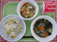さつまいもご飯 なめこと大根のみそ汁 肉豆腐 牛乳