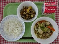麦ご飯 豚汁 ひじきの炒め煮 牛乳