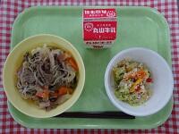 麦ご飯 なすそぼろうどん 千草和え 牛乳
