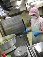 今日 は、3月3日の「ひな祭 り」の行事食献立です。桃の花が咲く季節のため、「桃の節句 」とも言われています。ちらし寿司には、鶏肉や椎茸・にんじん・ごぼうなどを小さく刻んで鍋で炒めて炊きあがったご飯にすし酢と共に混ぜ合わせました。すまし汁には、はな麩を使い、和え物には菜の花を入れて春の献立が完成しました。たくさんの具材を使って、『食べ物に困らないように』という願いも込められています。学園の玄関には桃の花が飾られていて春の訪れを感じます。今日も学園生の笑顔があふれる給食時間になりそうです。