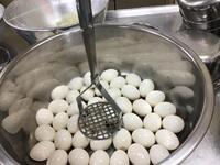 今日の給食はチキン南蛮です。複雑な作業が多いため何日も前から計画して早朝から調理員さん総出で作りました。衣をつけた鶏肉に卵をつけて油で揚げます。別のお鍋で甘酢を炊いて冷ましておいて、熱々に揚がったお肉に甘酢をたっぷりかけます。チキン南蛮と言えばタルタルソースですね。今日はタルタルソースも手作りしました。ゆで卵をつぶして玉ねぎのみじん切りと一緒にマヨネーズであじつけしました。教室では茹でたキャベツを盛り付けてチキン南蛮を並べその上にタルタルソースをかけて頂きます。子どもたちも先生もみんな大喜びの給食時間でした。