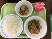 今日は1学期最後の給食です。今日も暑い中調理員さんたちは愛情いっぱいの給食を作ってくれました。夏野菜のカレーライスには玉ねぎ・かぼちゃ・オクラ・なす・ピーマン・トマト・ゴーヤが入っています。たくさんの野菜を手作りのルーでじっくり煮込んだ夏野菜カレーです。また、フルーツポンチには季節の果物スイカを入れました。子どもたちは大喜びでモリモリ食べていました。今日も給食は完食でした!