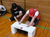 体育館で、握力、長座体前屈、上体起こし、立ち幅跳び、反復横跳びを、運動場で50m走とソフトボール投げを行いました。