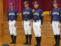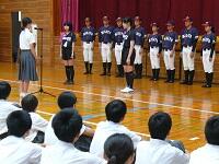 軟式野球部、女子バレーボル部の各選手が抱負を述べ、これまでの練習の成果を発揮できるよう、仲間と力を合わせて頑張りたいと力強く決意を語りました。