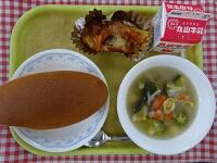 黒糖パン マカロニスープ 白身魚のピザ焼き 牛乳