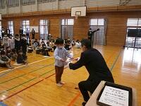 24日(金)に修了式を行いました。はじめに各学年の代表学園生に修了証が渡されました。次に4年生の代表児童が「この一年間で成長したのは勉強面です。難しい問題でも楽しんでやるようにしました。」8年生の代表生徒が「送別遠足の準備などは不安もあったけど、学園生が楽しめたという話を聞いて嬉しかった。立派な卒業生に負けないような9年生になりたい。」と締めくくりました。