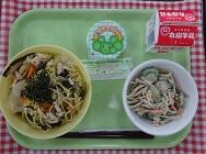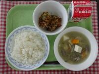 今日の副菜は「ひじきの炒め煮」でした。ひじきは、乾物なので水でもどして使ったのですが、予定より多くの量ができて、保健給食委員会の子どもたちからは「ひじきの炒め煮は主菜かと思っていました!」と言われました。それでも、みんなよく食べてくれて、食べず嫌いで初めて食べた1年生は「食べてみたら美味しかった~!」と感想を言ってくれました。