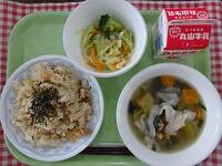 鶏飯 かみかみごぼうサラダ 青梅ゼリー 牛乳