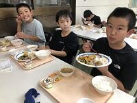 今日は、地産地消給食・美郷の日です。今日の給食は、西郷で作られた牛肉をたっぷり使った「美郷 ビーフカレーライス」です。この牛肉は、西郷の林田さんが育てた牛の肉です。林田さんが大切に育てて作った牛肉を、感謝の気持ちを込めて、おいしくいただきました。またデザートには西郷で収獲された梨がついています。今日の梨の品種は秋月です。梨にはいろいろな品種があり食感や味が違います。今日は10月5日に行われる運動会の予行練習でした。朝から頑張った子供たちはとても美味しそうに給食を食べていました。
