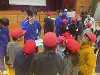 後半は、「ウォークラリー」。校内と運動場に設置されたポイントで、「ピッタリ1000g集め」や「イントロドン」などのゲームを行いました。