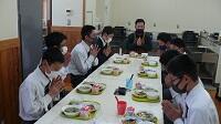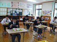 9年生は、卒業2日前の14日(月)に卒業を祝う「ミニバイキング給食」をいただきました。9年生はとても喜んでおり、自分の好きなものを沢山食べていました。果物好きな生徒はデザートをお腹いっぱい食べたようです。「自分の好きなものを選んで食べることができて嬉しかった。」「これまでにないメニューがあって美味しかった。」などの声が聞かれました。美郷南学園の給食を10年間食べることができて、本当に幸せでした。毎日とても美味しかったです。