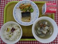 さつまいもご飯 けんちん汁 サバの塩焼き 甘酢和え 牛乳