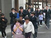 非常ベルが鳴った後、緊急放送を聴き、無言で素早く運動場へ避難することができました。事前に知らせずに行ったのですが、どの子も落ち着いて行動することができました。上級生が下級生を誘導しながら避難する姿が見られました。
