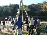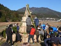 1月14日(日)に、師走祭りの迎え火に使うやぐら作りを行いました。PTA役員の皆さんに材料等の準備していただきました。