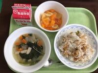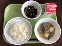 今日は美郷の日給食です。美郷町で作られた食べ物をたくさん使った「秋野菜の煮物」です。美郷町で作られたしいたけ、西郷で育てられたじとっこと栗を使いました。また、和え物には、秋が旬の柿を使った「柿なます」を作りました。秋に一番おいしく食べられる旬の食べ物をたくさん使った美郷の日のメニューです。急に寒くなったので体調管理に気を付けて沢山食べてほしいと願っています。