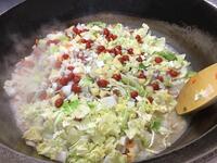 『ミートビーンズスパゲッティ』です。ひき肉とたくさんの野菜と大豆を使ってヘルシーに仕上げました。大豆には良質なタンパク質が豊富に含まれていることから「畑の肉」といわれています。また三大栄養素である、炭水化物、たんぱく質、脂質もバランス良く含んでいるほか、ビタミンB1、ビタミンE、カルシウム、鉄などを豊富に含んだ栄養価の高い食品です。工夫次第で大豆はいろんな料理に使えるのでこれからの給食にも大豆を使って行きたいです。子どもたちも満足していました。