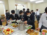 9年生は、卒業式前日の15日(水)に卒業を祝う「ミニバイキング給食」をいただきました。9年生はとても喜んでおり、自分の好きなものを沢山食べていました。果物好きな生徒はデザートをお腹いっぱい食べたようです。「お腹いっぱい食べることが出来て嬉しかったです。」「フルーツがとても美味しかったです。」などの声が聞かれました。美郷南学園の給食を10年間食べることができて、本当に幸せでした。毎日とても美味しかったです。