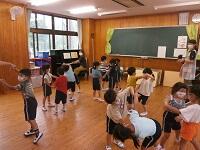 6月16日(水)にリトミックを行いました。音楽の牛島先生が、幼稚園生にピアノと歌でリズムにのって遊ぶ活動です。園児たちは、みんなとても楽しそうでした。