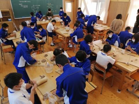 講師に迎えて全校美術「自分だけの器を作ろう」が行われました。