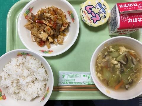 5/10 豆ご飯 牛乳 厚揚げとキノコのサンラータン