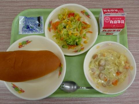 マヨネーズパン 牛乳 冬野菜のクリーム煮 スタミナサラダ