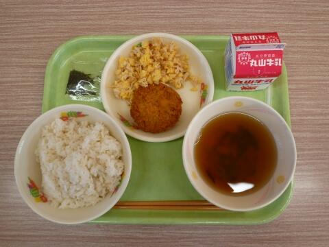 麦ごはん 牛乳 高野豆腐の卵とじ りっちゃんサラダ