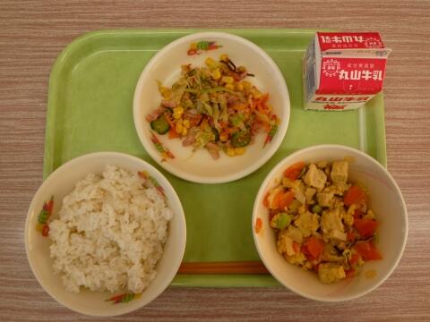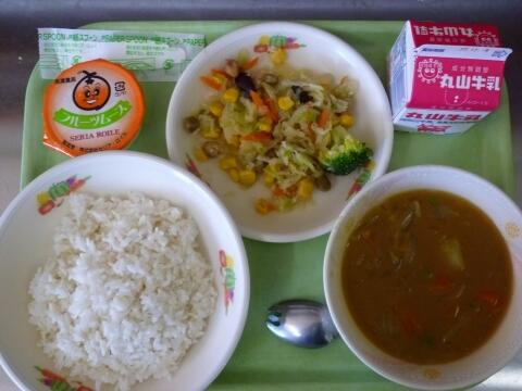 ポークカレー 牛乳 豆サラダ フルーツムース