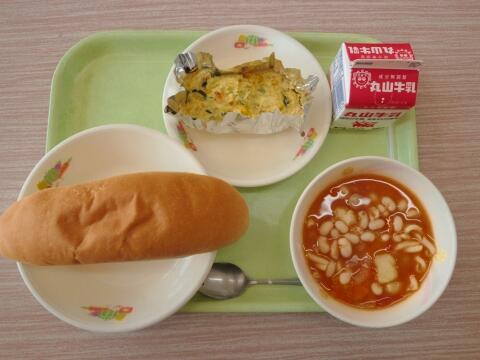 米粉パン 牛乳 白菜スープ 魚のピザ焼き