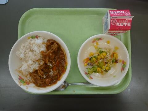 流星の絆のハヤシライス 牛乳 コーンサラダ 『ラッキーにんじんの日』