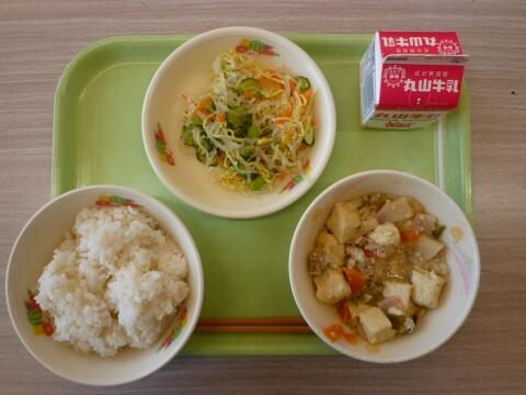 麦ごはん 牛乳 麻婆大根 れんこんサラダ