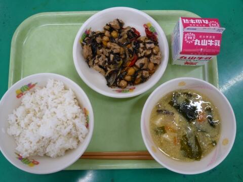 麦ごはん 牛乳 みそけんちん汁 ひじき煮