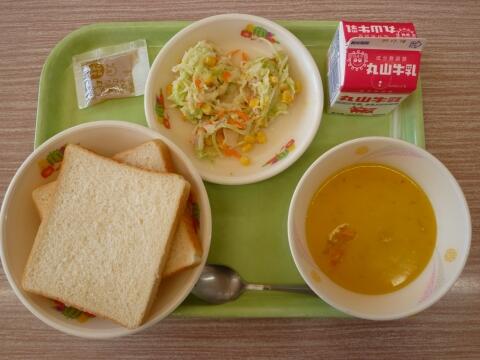 食パン りんごジャム パンプキンポタージュ コーンサラダ