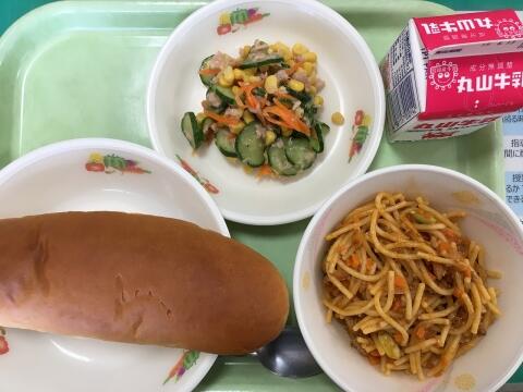 6/6 ミニ黒糖パン 牛乳 スパゲッティミートソース コーンサラダ