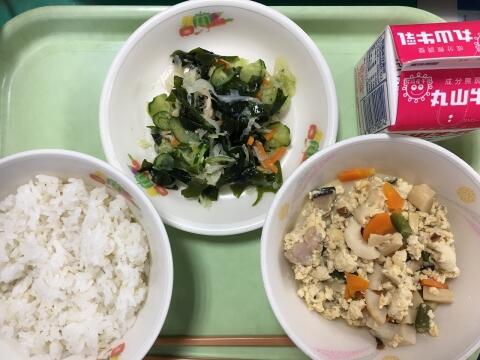 10/8 麦ご飯 牛乳 野菜の五目煮 おかかマヨネーズ和え
