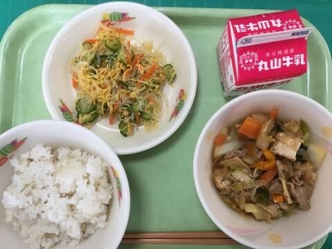 9/2 麦ご飯 牛乳 回鍋肉 春雨サラダ