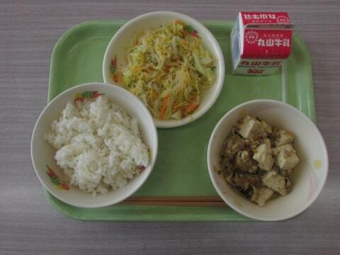 10/15 麦ご飯 牛乳 麻婆豆腐 錦糸卵のゴマ酢和え