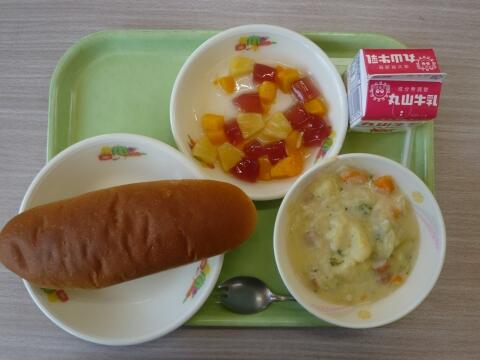黒糖パン 牛乳 じゃがいものチーズ煮 フルーツポンチ