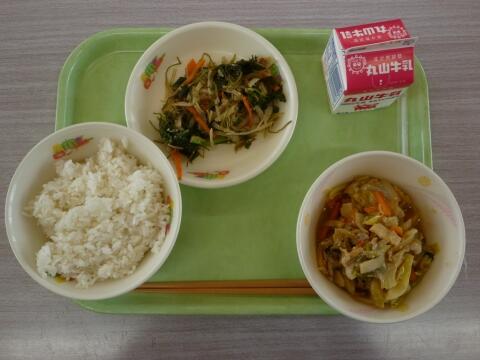 11/13 ポークカレー 牛乳 海藻サラダ お楽しみデザート