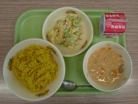 10/9 ターメリックライスのクリームソースかけ 牛乳 イタリアンサラダ
