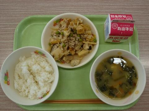 麦ごはん 牛乳 なめこ汁 たけのこのそぼろ煮