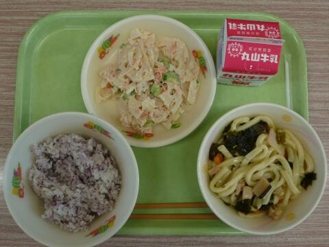 減量ゆかりごはん 牛乳 わかめうどん れんこんサラダ